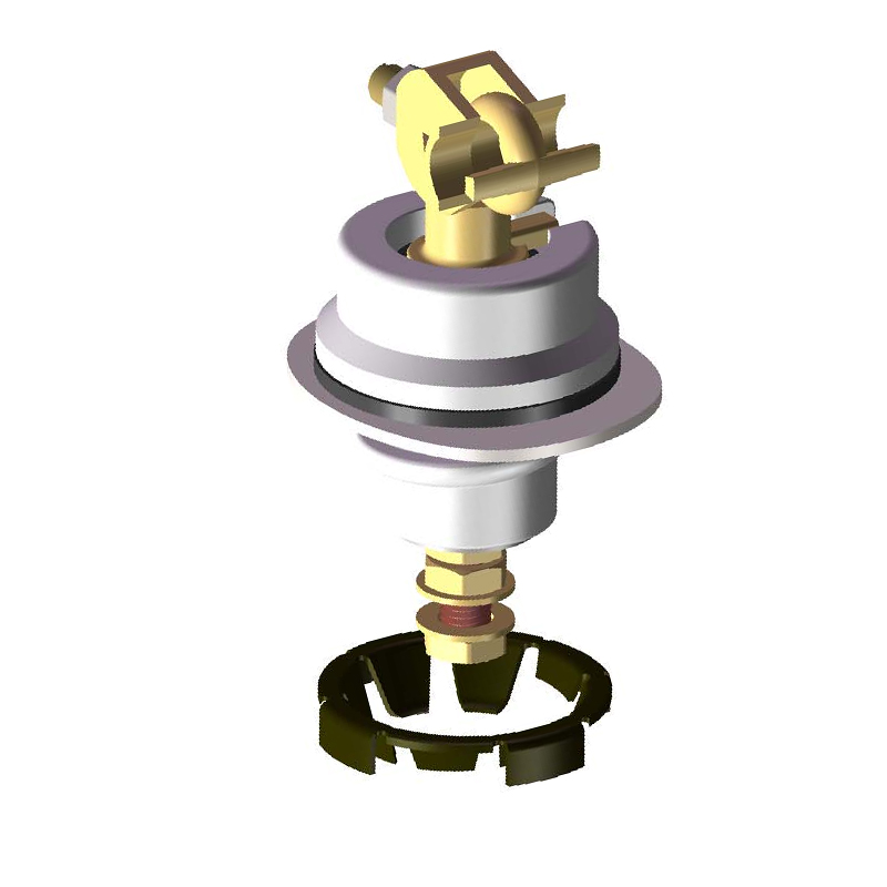 The Threaded Bushings for voltage of 1.2kV are supplied assembled with the respective porcelain, NBR gaskets, copper threaded rod, blued steel spin grip nut, zinc-plated brass connector and stainless steel lock washer and nut.