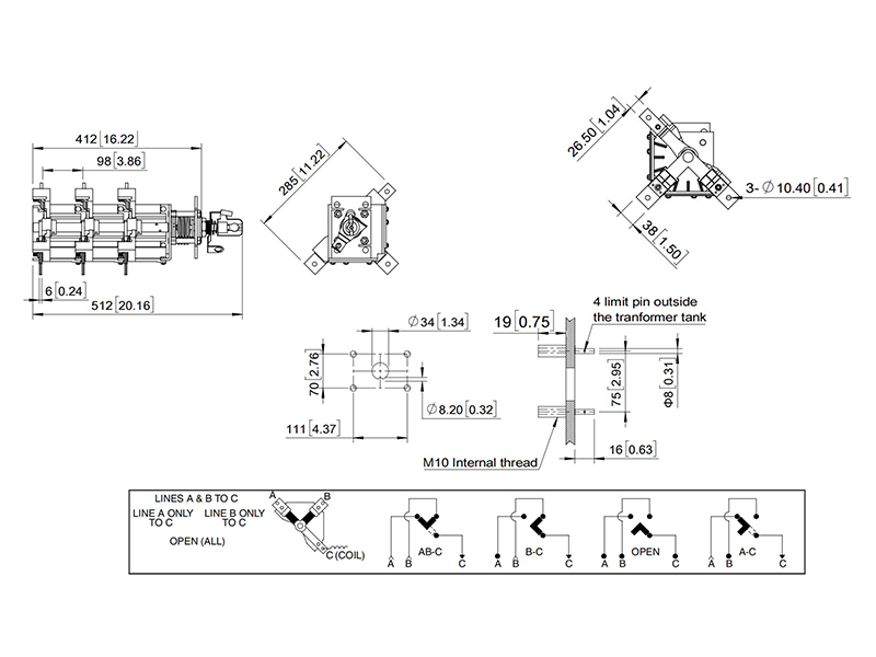 The four-position loadbreak switch is used in underground residential applications with loop feed, and in three-phase commercial industrial installations where the ability to use an alternative source of power is necessary. They can also be used to close or open the power source. The switch uses a manually charged over-toggle stored spring assembly to operate , which is independent of operation speed. The silver plated copper blades are securely keyed between the vented rotor halves which ensure proper blade and contact alignment during switching.