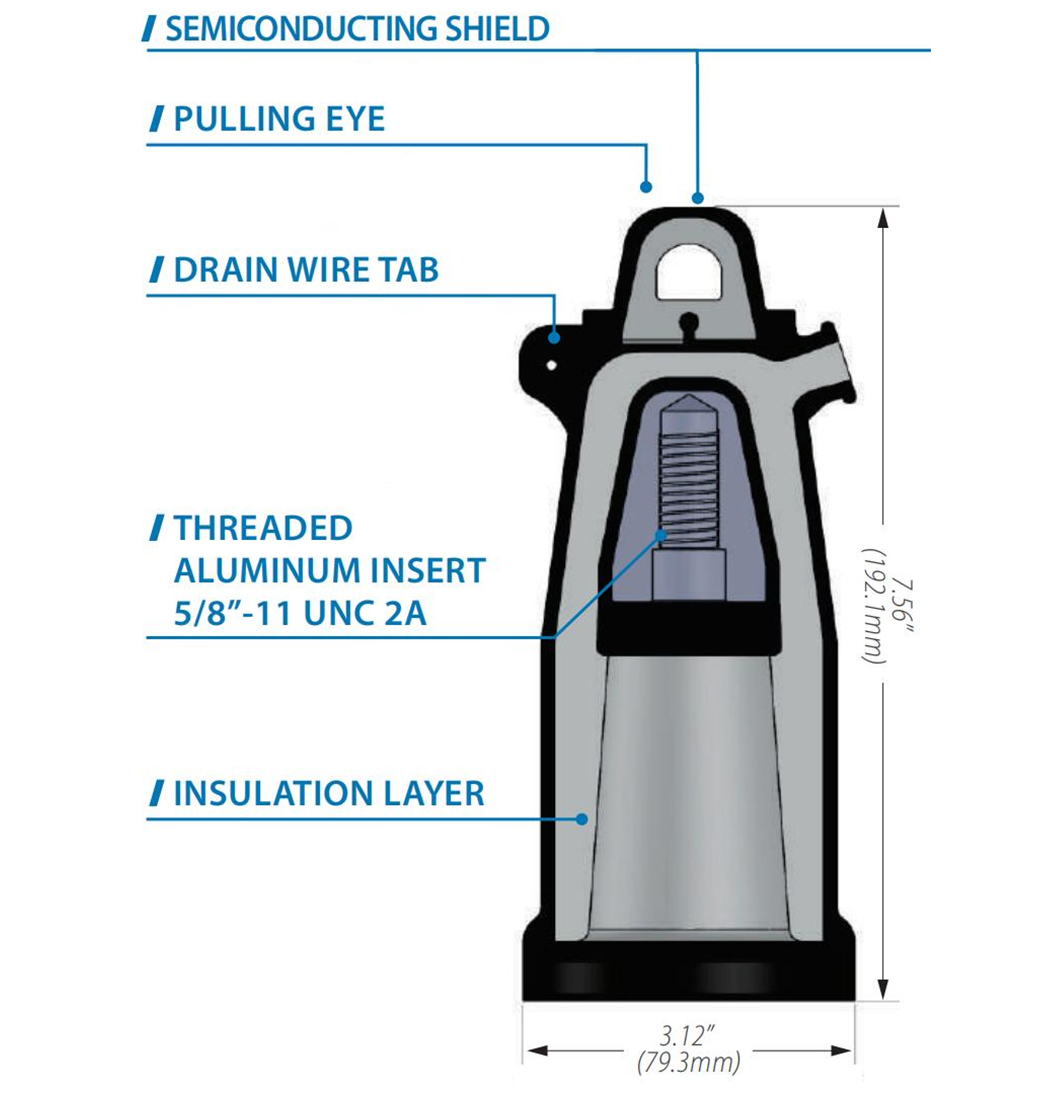 This Insulation Protective Cap is an accessory product to other 15kV 200A products with loadbreak interfaces (bushing inserts, loadbreak junctions, feed thru inserts, etc.).It is designed to physically seal and electrically insulate loadbreak bushing interfaces. When installed on a loadbreak bushing interface, and properly grounded using the attached drain wire, the Loadbreak Insulation Protective Cap provides a submersible, fully shielded insulated cap for energized bushings. The Loadbreak Insulation Protective Cap can be used for temporary or permanent applications.