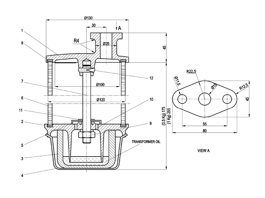 TYPE / FORM | CODE NO | SILICAGEL CAPACITY (Kg) | TRANSFORMER OIL CAPACITY (Max.) (Kg) | |