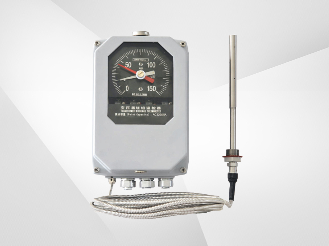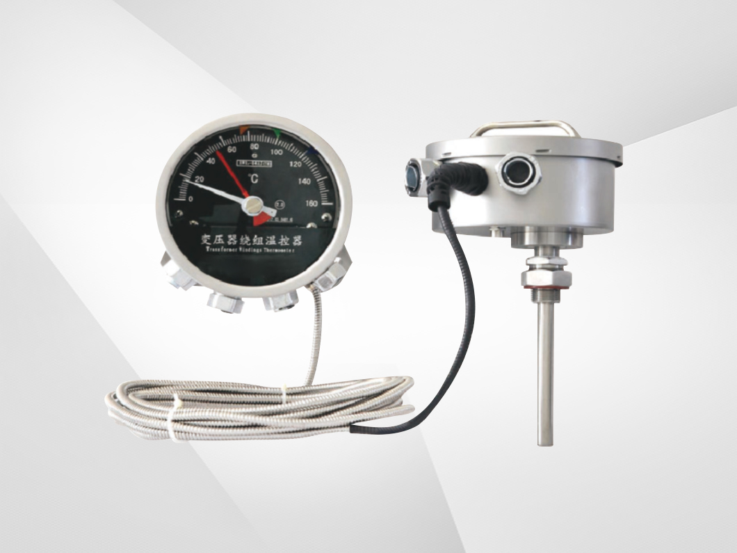BWR2-04 (TH) series Transformer winding thermometer is a special instrument designed for transformers by adopting the principle of additional temperature rise. The instrument has good protection performance, can work normally in outdoor conditions, can be widely used in transformers and other equipment temperature detection and control. The instrument is equipped with four to six adjustable control switches, which can be used for transformer cooling system control and signal alarm, over-temperature tripping and so on. Through embedded in the BL-B (TH) transmitter temperature transmitter or Pt100 platinum resistance, output and temperature value corresponding to the DC (4-20) mA current signal or Pt100 platinum resistance signal, for computer systems and secondary instrumentation, to achieve unmanned power station management.